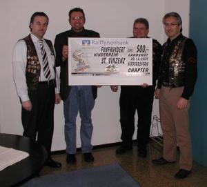 Unsere Weihnachtsfeier stand dieses Jahr unter einem wohltätigen Stern. Wir vereinbarten, dass aus dem Erlös der Tombola 500 €, sowie unsere restlichen T-Shirts vom Friendship Ride an das Kinderheim St. Vinzenz in Landshut gespendet werden.